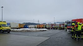Lage: Vier dreißig Liter Kanister mit Gefahrgut ausgelaufen, vier leichtverletzte Personen, Flüssigkeiten gebunden. Gelände weiträumig abgesperrt. Keine Gefahr für die Bevölkerung