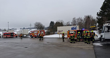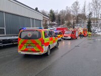 Lage: Vier dreißig Liter Kanister mit Gefahrgut ausgelaufen, vier leichtverletzte Personen, Flüssigkeiten gebunden. Gelände weiträumig abgesperrt. Keine Gefahr für die Bevölkerung