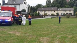 Während des ganzen Tages waren zudem sechs junge Mitglieder und fünf Betreuer vom Hof Kreisverband des Roten Kreuzes mit von der Partie. Sie arbeiteten teils separat ihre Einsätze ab, etwa den Arbeitsunfall einer Person mit Verdacht auf Herzinfarkt. "Ein besonderes Highlight war nach der Erstversorgung der Transport ins Klinikum Naila und die folgende Patientenübergabe in der Notaufnahme", berichtet Annika Höger, BRK-Betreuerin und ausgebildete Sanitäterin. Parallel bauten die jungen Marxgrüner Brandschützer einen 5000 Liter fassenden Löschwasserpuffer auf, da ein Rohrbruch in der Lindenstraße in Marxgrün angenommen wurde. Es galt, die Löschwasserversorgung sicherzustellen. Bei der Großübung lautete das Einsatzstichwort "Brand in der Werkstatt, Personen in Gefahr". Mit Sondersignalen fuhren die Wehren an. Lediglich Fahrer und Maschinist waren erwachsene Brandschützer. Alle anderen Posten vom Einsatzleiter über den Gruppenführer bis hin zum Atemschutzgeräteträger übernahmen die Jugendlichen. Allerdings durften sie dabei vieles nur simulieren: Ein Anschluss an die Pressluftatmer erfolgte ebenso wenig wie das Aufsetzen der Atemschutzmasken. "Aber die Jugendlichen haben die immerhin 20 Kilogramm Gewicht auf dem Rücken, und das ist nicht ohne", erklärte Jugendwart Daniel Popp.