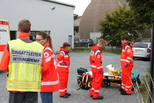 Kreisbrandinspektor Rolf Hornfischer beobachtete die Großübung der Jugendlichen, die vier Personen zu retten und ans Rote Kreuz zu übergeben hatten. Natürlich war auch Brandbekämpfung nötig, bei der die Drehleiter der Feuerwehr Naila zum Einsatz kam. Bei der Großübung gab es zudem einen Sammelplatz für die Verletzten. Dort versorgten die jungen Rotkreuzler fachmännisch die Verletzten, unterstützt von erklärenden Hinweisen durch eine Notärztin in Ausbildung vom Klinikum Naila. Drei BRK-Fahrzeuge waren im Einsatz nebst der Drehleiter und zwei weiteren Fahrzeugen aus Naila, den zwei Marxgrüner Feuerwehreinsatzfahrzeugen und zwei Fahrzeugen der Issigauer Wehr.